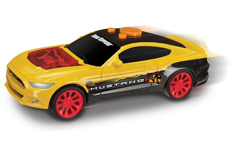 Samochód, który sam jeździ, inspirowany Fordem Mustangiem. Posiada 3 przyciski działania uruchamiające silnik, światła drogowe, realistyczne odgłosy i muzykę.