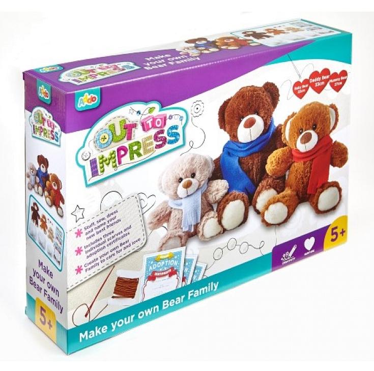 Stwórz swoje własne przytulanki – rodzinę misiów - z tym zestawem. Wypełnij je puchem, zszyj i nadaj im imię! Uzupełnij dla nich certyfikat adopcji, żeby nie zapomnieć o ich urodzinach.