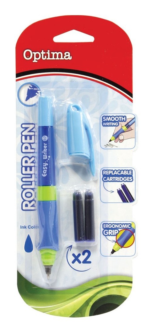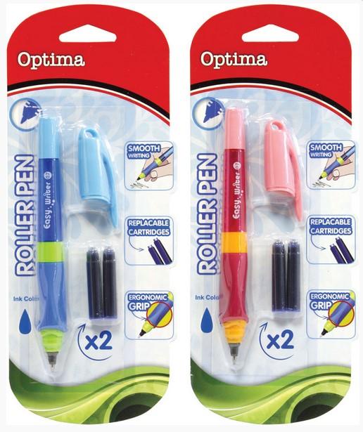 Pióro kulkowe Optima z ergonomicznym uchwytem, w komplecie z 2 nabojami. Kolor atramentu niebieski.