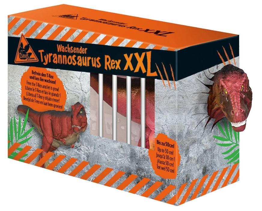 Tyrannosaurus Rex był jednym z najbardziej znanych dinozaurów prehistorycznych czasów. Na podstawie niektórych odkryć naukowcy zakładają, że miał on nawet do 13 metrów wysokości i ważył do 9 ton. Mięsożerca miał ogromne zęby i duże gardło, co sugeruje, że był bardziej myśliwym niż padlinożercą. Jak to często bywa, wiele pytań pozostaje bez odpowiedzi i dlatego tak bardzo fascynuje, zwłaszcza chłopców. Umieść figurkę w pojemniku z zimną wodą. Obserwuj, jak rośnie każdego dnia. Król dinozaurów dorasta do 50 cm w ciągu 15 dni! Dostępny w pudełku prezentowym, z którego chciałby się wyrwać. Idealny prezent dla wszystkich fanów dinozaurów. Stwórz własną Dino - Kolekcję z Magicznym Dino - Ręcznikiem, Dino - Ołówkiem, Dino - Tatuażami i Rosnącymi Dino - Jajkami. Wymiary opakowania: 15 x 10,5 x 6,5 cm. Doskonała, edukacyjna zabawka dla dzieci w wieku powyżej 3 lat. UWAGA! Elementy zabawki są drobne, istnieje ryzyko zadławienia, dlatego zaleca się zabawę pod nadzorem osoby dorosłej. Elementy nie nadają się do spożycia! x