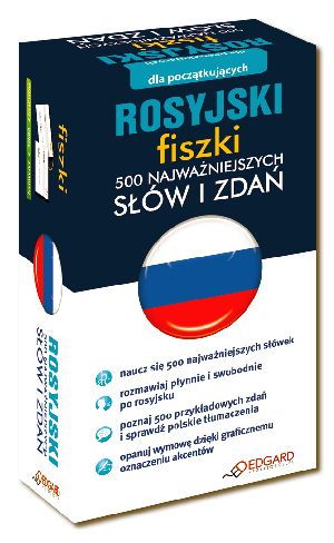 Dzięki nauce z fiszkami: - poznasz 500 najważniejszych słów i 500 zdań, dzięki którym zaczniesz swobodnie rozmawiać, - utrwalisz słówka i poznasz ich użycie w kontekście - przykładowe zdania, - szybko i skutecznie opanujesz słownictwo z 23 grup tematycznych, - opanujesz prawidłową wymowę dzięki graficznemu oznaczeniu akcentowanych sylab, - będziesz ćwiczył język o każdej porze i w dowolnym miejscu. Rosyjski fiszki 500 najważniejszych słów i zdań to wyjątkowy zestaw 500 ponumerowanych kartoników, przeznaczony dla osób rozpoczynających naukę języka. Nauka z kursem umożliwia komunikację na poziomie podstawowym, dzięki opanowaniu 500 najczęściej używanych w języku rosyjskim słów i wyrażeń. Przykłady użycia słów w zdaniach to gotowe wzorce komunikacyjne. Aby ułatwić zapamiętanie materiału metodą skojarzeń, kurs podzielono na 23 praktyczne grupy tematyczne. Graficzne oznaczenie akcentowanych sylab pozwala opanować prawidłową wymowę. Specjalny dobór słówek, przykłady użycia w zdaniach i pudełko tworzą unikalny zestaw do nauki języka rosyjskiego.