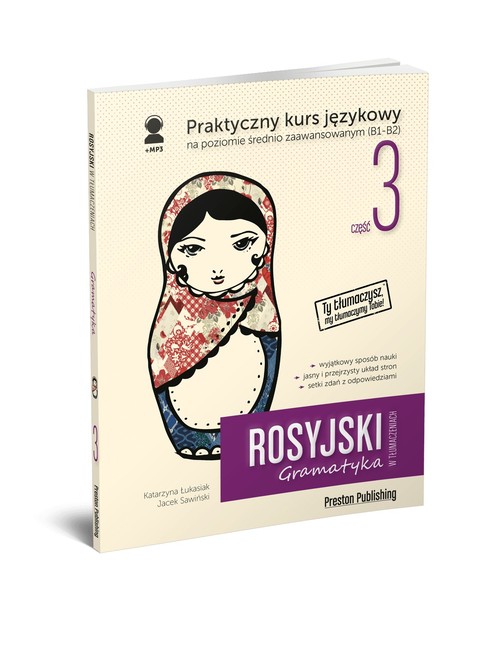 Trzecia część niezwykle skutecznej i przystępnej serii do nauki języka rosyjskiego. Jeśli chcesz opanować język na poziomie średnio zaawansowanym i swobodnie radzić sobie w sytuacjach komunikacyjnych z zachowaniem poprawności gramatycznej, jest to książka właśnie dla Ciebie.