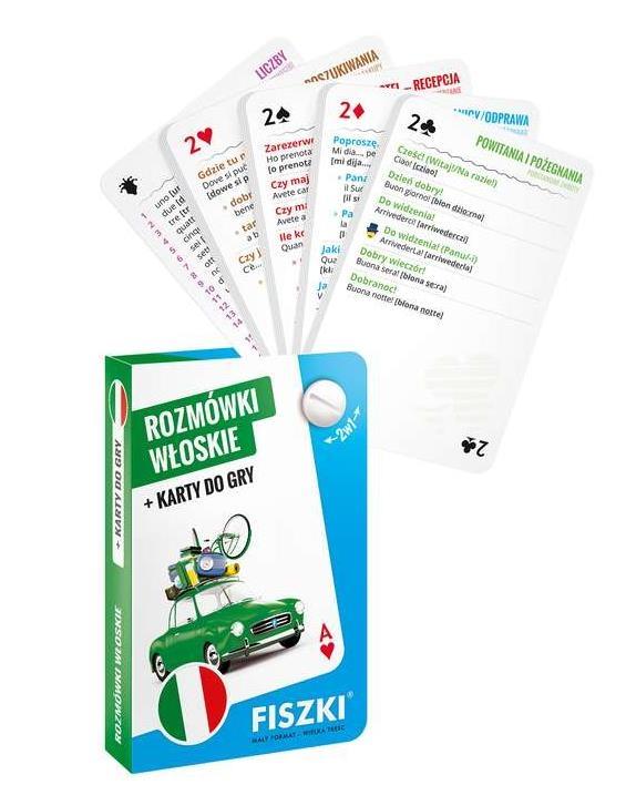 Na kartach szybko odnajdziesz potrzebne słowa i zwroty. A w czasie nudy czy niepogody zagrasz nimi w brydża czy ułożysz pasjansa.