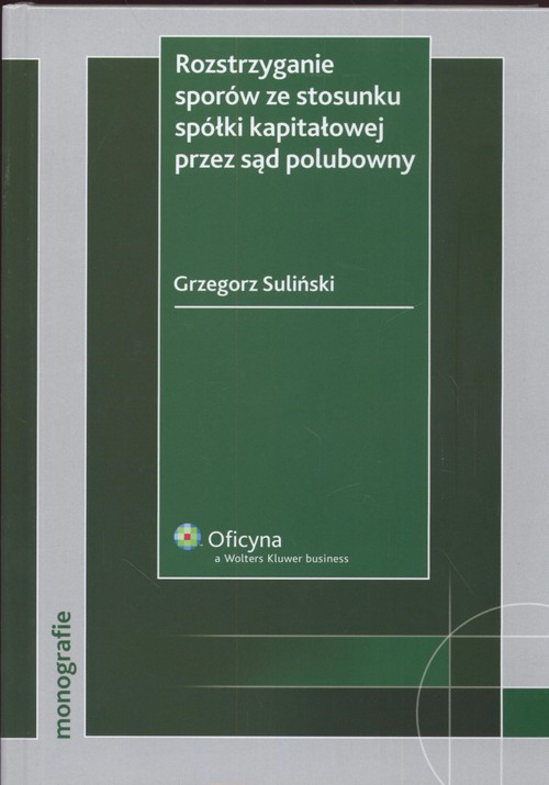Stan prawny na 1.01.2008 r. Sądownictwo polubowne stanowi alternatywę dla sądownictwa państwowego. Ostatnie lata przyniosły wzrost ilości spraw rozstrzyganych przez sądy polubowne. Jednym z obszarów, na którym od kilku lat trwa ekspansja sądownictwa polubownego jest prawo spółek. Wyraża się w zawieraniu w umowach lub statutach spółek klauzul stanowiących, iż ewentualne spory ze stosunku spółki będą rozstrzygane przez sąd polubowny. W opracowaniu autor zastanawia się, czy w świetle obowiązujących przepisów prawa dopuszczalna jest praktyka poddawania pod sąd polubowny - w oparciu o klauzulę arbitrażową zawartą w umowie lub statucie spółki lub umowę o sąd polubowny zawartą poza umową (statutem) spółki - sporów ze stosunku spółki. Ponadto autor rozważa kwestię, czy przepisy prawne regulujące sądownictwo polubowne wychodzą naprzeciw zapotrzebowaniu wynikającemu ze specyfiki sporów ze stosunku spółki.