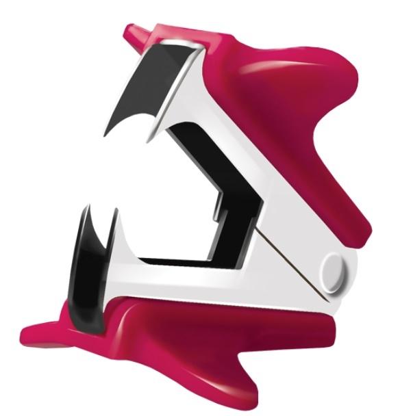 Rozszywacz w obudowie z tworzywa sztucznego, części mechaniczne metalowe. Kolor czerwony. Dostosowany do zszywek: 10, 24/6 ,24/8, 26/6, 26/8.
