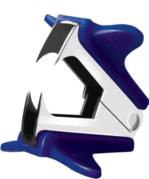 Rozszywacz w obudowie z tworzywa sztucznego, części mechaniczne metalowe. Kolor niebieski. Dostosowany do zszywek: 10, 24/6 ,24/8, 26/6, 26/8.
