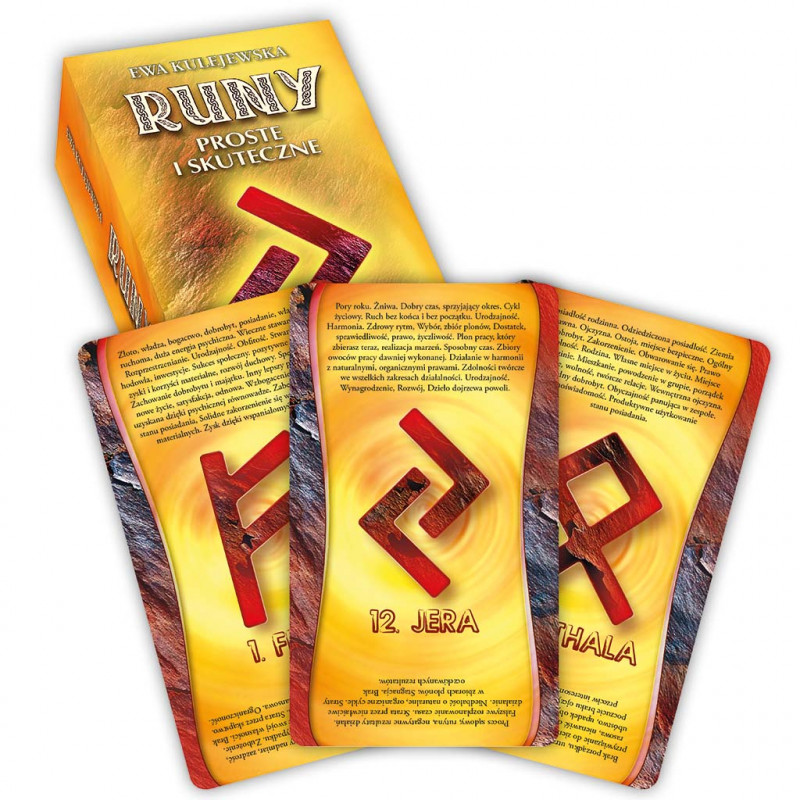 Podręcznik w przystępny sposób opisuje poszczególne symbole. Znaleźć w nim można interpretacje i znaczenia run, a także sfery życia, których dotyczą. Nie można zapominać, że każda z nich ma zarówno pozytywny, jak i negatywny aspekt. Zostały one dokładnie scharakteryzowane w tej książce. Wartościowe dla każdego czytelnika będą również informacje o amuletach i talizmanach z symbolami runicznymi. Stosując je na co dzień, można zapewnić sobie sukcesy w życiu zawodowym i osobistym, wpłynąć korzystnie na rozwój duchowy czy ochronić się przed negatywnymi wpływami. Zakres oddziaływania run jest bowiem bardzo szeroki i obejmuje w zasadzie każdą dziedzinę naszego życia. Po zgłębieniu zasad interpretacji i znaczenia run można przystąpić do zastosowania ich w praktyce przy użyciu dołączonej talii. Atrakcyjna szata graficzna poszczególnych kart znakomicie koresponduje z ich magią i symbolami.