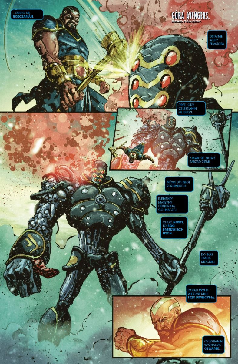 Trzy najpotężniejsze drużyny superbohaterów wstępują na wojenną ścieżkę. X-Men, świadomi swojej nowej potęgi, ogłaszają się bogami Ziemi. Przedwieczni – od wieków dumni obrońcy ludzkości – uważają, że ta rola należy do nich. Avengers, usiłujący zapobiec wojnie, poznają zaś bolesną prawdę: ich rzekomi przyjaciele już od dawna nie są z nimi szczerzy. Wkrótce wszystkie te ledwo skrywane napięcia wybuchną jak uśpiony wulkan, a Ziemia stanie w ogniu. W środku pożaru przebudzi się istota gotowa bezwzględnie osądzić ludzkość. Czy świat przetrwa ten sądny dzień? Czy przetrwają go skłóceni superbohaterowie?