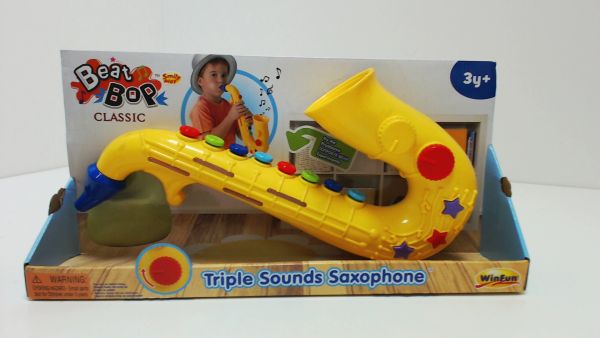 Duży plastikowy saksofon na baterie. 11 przycisków z różnymi melodyjkami.
