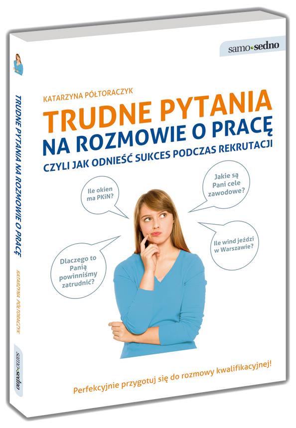 Rozmowa kwalifikacyjna to decydujący etap procesu rekrutacji. Dowiesz się, jak się do niego przygotować, aby wypaść jak najlepiej i aby to właśnie ciebie zatrudniono. Nauczysz się, jak zrobić dobre pierwsze wrażenie, a jakich zachowań powinieneś unikać. Przygotujesz się do odpowiedzi na pytania trudne, zaskakujące, a także dowiesz się, na które nie musisz odpowiadać. Przekonasz się, jak w niekonwencjonalny sposób pracodawcy sprawdzają różne umiejętności oraz kompetencje, pytając m.in. o to, ile okien ma Pałac Kultury i Nauki, co by było, gdyby słonie potrafiły latać, czy ile litrów mleka rocznie wypija przeciętny Polak. Dowiesz się, o co sam możesz zapytać osobę rekrutującą, a także jakie błędy mogą cię zdyskwalifikować w jej oczach. Dzięki poradnikowi pójdziesz na rozmowę doskonale przygotowany i nie wpadniesz w pułapkę rekrutera!Dlaczego poradnik trafia w Samo Sedno? - prezentuje najczęściej pojawiające się podczas rozmowy pytania i doradza, w jaki sposób na nie odpowiadać- opisuje wszystkie etapy rozmowy kwalifikacyjnej- podpowiada, o czym należy pamiętać, przygotowując się do rozmowy- radzi, jak postępować w przypadku pytań podchwytliwych, nietypowych czy zakazanych- omawia inne sposoby sprawdzania kandydatów takie jak testy czy Assessment Center