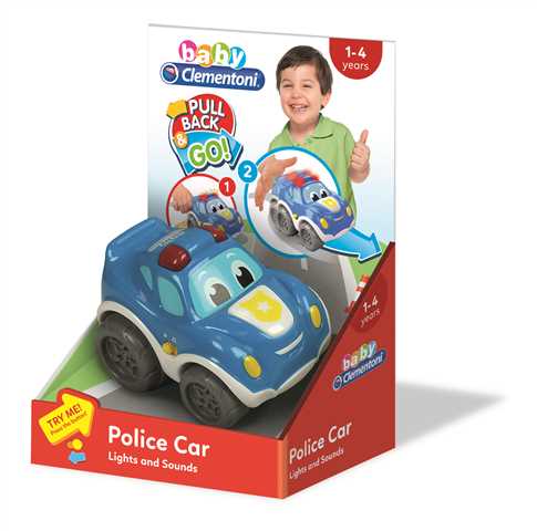 Zabawny napęd typu "cofnij i puść" wspomaga rozwój manualny dziecka. Na masce znajduje się interaktywny przycisk, po naciśnięciu którego autko będzie wydawać prawdziwe odgłosy, a syrena zacznie migać.