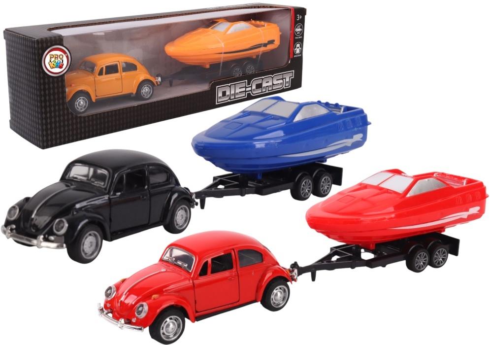 Model samochodu wykonano z solidnego metalu z dbałością o detale od charakterystycznych błotników po chromowane zderzaki. Otwierane drzwi umożliwiają zaglądanie do wnętrza i odgrywanie realistycznych scenek. Całość uzupełnia przyczepa z lekką, plastikową łodzią motorową w energetycznych kolorach (pomarańczowy, czerwony lub niebieski w zależności od wariantu), gotową do wodowania po każdej trasie. Dzięki funkcji pull-back, samochód samodzielnie rusza po cofnięciu i puszczeniu, co dodaje dynamiki zabawie. Zestaw to nie tylko świetna rozrywka, ale też szansa na rozwijanie kreatywności, planowania wypraw i odgrywania wakacyjnych przygód. Kultowy design samochodu w wersji kolekcjonerskiej. Otwierane drzwi umożliwiają zabawę we wnętrzu pojazdu. Realistyczna przyczepa z funkcją mocowania i zdejmowania łodzi. Napęd typu pull-back dynamiczna jazda bez baterii. Estetyczne i trwałe wykona nieidealne do zabawy i na prezent. Mix kolorystyczny pozwala dobrać ulubiony wariant. Towar wysyłany losowo. x