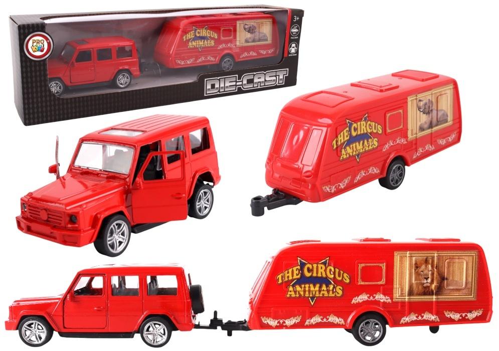 Opis produktuZasady bezpieczeństwaWyjątkowy zestaw Samochód z Przyczepą Cyrkową z serii Pro Kids Die-Cast, który przeniesie Twoje dziecko w świat podróżującego cyrku pełnego magii, zwierząt i niezapomnianych emocji! Terenowy samochód w ognistej czerwieni, inspirowany klasycznymi modelami SUV, łączy w sobie siłę i elegancję. Dzięki otwieranym drzwiom oraz realistycznemu wnętrzu, mały kierowca może poczuć się jak prawdziwy organizator cyrkowego tourne. Do pojazdu dołączona jest efektowna przyczepa z grafiką dzikich zwierząt, takich jak tygrys, lew i słoń symboli dawnego cyrkowego splendoru. Każdy szczegół od ornamentów dekoracyjnych po napisy The Circus Animal szostał zaprojektowany z myślą o rozbudzeniu wyobraźni i stworzeniu klimatu podróżującego cyrku z minionej epoki. Zestaw wykonano z trwałych materiałów metalowa karoseria pojazdu i solidna konstrukcja przyczepy zapewniają długotrwałą zabawę, odporną na trudy dziecięcych ekspedycji. To doskonała propozycja dla dzieci, które uwielbiają samochody, zwierzęta oraz twórcze odgrywanie ról. Zabawka zachęca do samodzielnego tworzenia historii, rozwija zdolności narracyjne i zapewnia godziny angażującej zabawy. Rozwijaj wyobraźnię, organizując cyrkowe tourne! Samochód typu SUV posiada napęd pull-back wystarczy go cofnąć i puścić, by ruszył do przodu. Otwierane drzwi umożliwiają odgrywanie scenek z załadunkiem lub przygotowaniem do występu. Przyczepa z wizerunkami dzikich zwierząt przyciąga wzrok i dodaje klimatu przedstawienia. Solidne wykonanie i trwałe materiały gwarantują długą zabawę.
