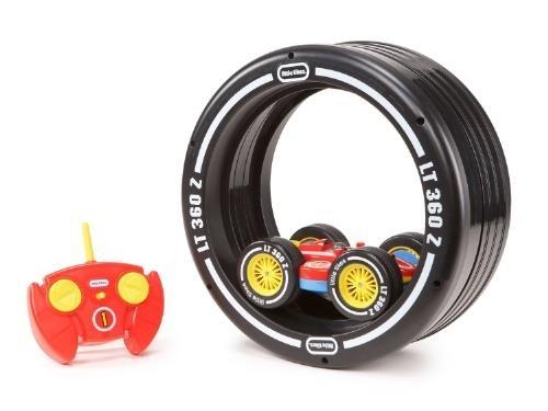 Zdalnie sterowany samochodzik z ruchomym torem w kształcie opony. Może t5askże ścigać się na zewnątrz.