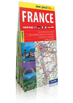 France - mapa samochodowa 1:1 050 000Mapa samochodowa Francji -stan dróg 2011, odcinki w budowie-autostrady i drogi szybkiego ruchu wraz z węzłami-szczegółowa kategoryzacja i numeracja dróg-odległości drogowe w kilometrach-plastyczna rzeźba terenu, lasy, parki narodowe-opisy pasm górskich oraz najważniejszych szczytów i przełęczy-skorowidz miejscowości