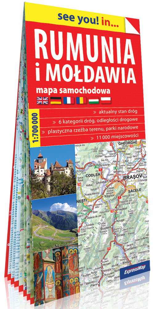 papierowa mapa samochodowa Zamek legendarnego Drakuli, malowane klasztory, skalne monastery i dzika przyroda. To wszystko czeka na turystów w Rumunii i Mołdawii. Papierowa mapa samochodowa tych krajów pomoże zaplanować podróż. Obejmuje swoim zasięgiem także wschodnią część Węgier. Mapa zawiera m.in.: stan dróg 2019, odcinki w budowie, odcinki o zniszczonej nawierzchni, szczegółową kategoryzację i numerację dróg, odległości drogowe w kilometrach, ponad 11 000 miejscowości na mapie, plastyczną rzeźbę terenu, opisy regionów oraz pasm górskich, skorowidz miejscowości rumuńskich i mołdawskich. x