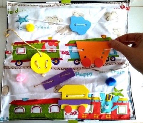 Sensoryczno-manipulacyjna książeczka. Ciuchcia