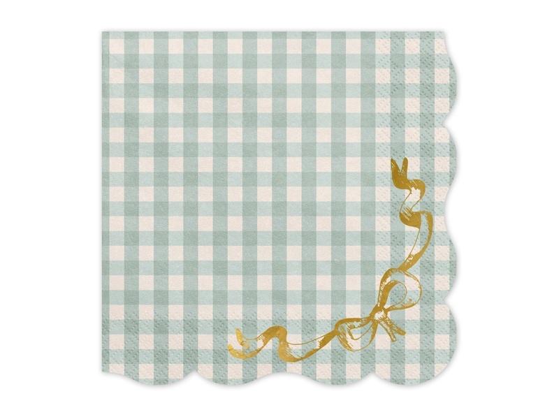 Opis produktuZasady bezpieczeństwaPapierowe serwetki w zieloną kratkę z błyszczącą złotą kokardką. Wymiary po rozłożeniu ok. 33 x 33 cm, wymiary po złożeniu ok. 16.5 x 16.5 cm.(1 op. / 12 szt.) x