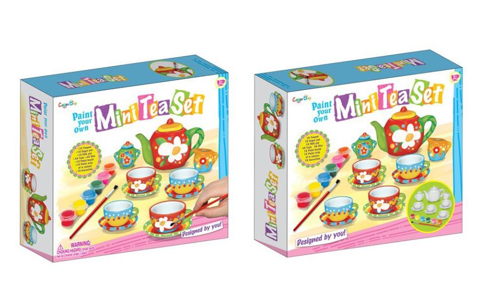 Zestaw rozwija wyobraźnię, zdolności manualne, plastyczne oraz kształtuje poczucie estetyki. Zabawki malujemy według własnych upodobań. Mogą posłużyć również jako wspaniała ozdoba każdego pokoju! Zawartość zestawu: - dzbanek do herbaty - 4 zestawy mini filiżanek i podstawek - dzbanek na mleko - cukiernica - zestaw farb - pędzelek - szczegółowa instrukcja. Zabawka posiada certyfikat CE. Zabawka przeznaczona dla dzieci powyżej 3go roku życia. x