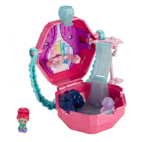 Pudełka w kształcie klejnotów otwierają się, zmieniając się w zestawy do zabawy! Dzieci znajdą w ich wnętrzu mnóstwo radosnych atrakcji oferujących liczne sposoby na zabawę z dżinami! Zestawy do zabawy mają wygodne uchwyty do przenoszenia i zawierają pierścionki, do których można przymocować dżiny, więc dzieci mogą teraz zabrać ze sobą ulubione dżiny, gdziekolwiek zechcą!