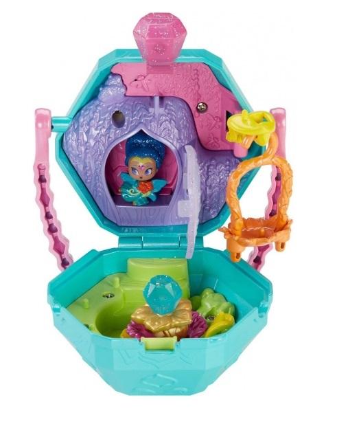 Pudełka w kształcie klejnotów otwierają się, zmieniając się w zestawy do zabawy! Dzieci znajdą w ich wnętrzu mnóstwo radosnych atrakcji oferujących liczne sposoby na zabawę z dżinami! Zestawy do zabawy mają wygodne uchwyty do przenoszenia i zawierają pierścionki, do których można przymocować dżiny, więc dzieci mogą teraz zabrać ze sobą ulubione dżiny, gdziekolwiek zechcą!