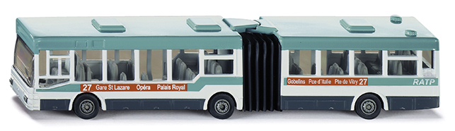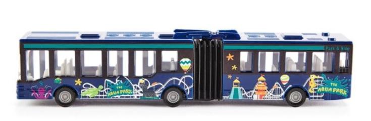 Autobus przegubowy wykonany z metalowych i plastikowych części odzwierciedla wygląd pojazdu rzeczywistego. Gumowe opony i przegub środkowy umożliwiają swobodne skręcanie autobusu. Doskonała zabawa dla małych kierowców.
