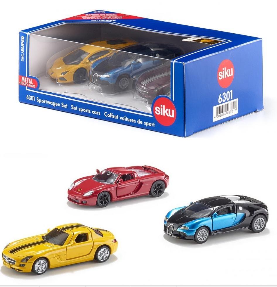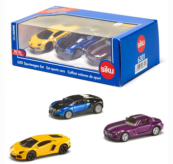 Atrakcyjny zestaw trzech pojazdów - Porsche Carrera GT, Bugatti Veyron i Mercedes Benz SLS - to ciekawy pomysł na prezent nie tylko dla najmłodszych kolekcjonerów. Modele wykonane są z metalowych i plastikowych elementów, a gumowe opony gwarantują swobodne poruszanie się po różnych powierzchniach. Modele SIKU wyróżnia precyzja wykonania i wysokie podobieństwo do rzeczywistych pojazdów, co podnosi ich walory poznawcze