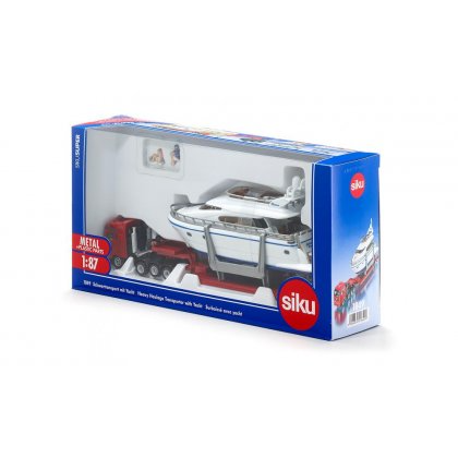 Model ciężarówki z lawetą do przewozu jachtu marki SIKU wykonany w przyjaznej dzieciom skali 1:87 to ciekawa propozycja dla miłośników wodnej przygody. Modele zachowują szczegóły pojazdów rzeczywistych, dzięki czemu zabawa będzie jeszcze bardziej fascynująca. Specjalny stabilizator boczny i gumowe, ciche koła zapewniają bezpieczny transport ekskluzywnego jachtu, wykonanego głównie z metalowych elementów. Ciężarówka bez problemu przetransportuje każde auto w skali 1:87.