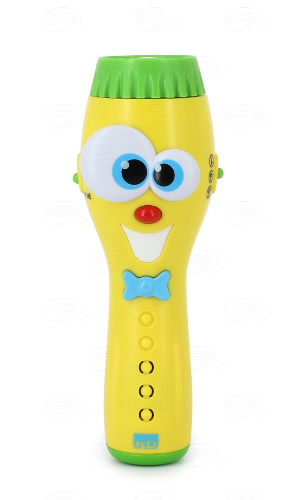 Silly Sam latareczka marki Dumel Discovery Interaktywna zabawka Uwalnia kolorową wiązkę światła, która rzuca wzór na ścianę. Wydaje różne dźwięki i melodie Mówi po polsku Zasilana bateriami Wyrazista kolorystyka. Doskonała zabawa dla każdego dziecka!
