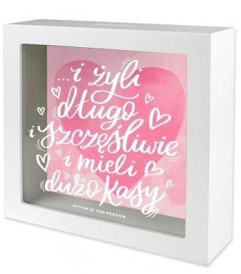 Ale najpierw trzeba na nie uzbierać... Ta skarbonka Ci w tym pomoże. Skarbonka wykonana jest z MDFU i szkła, jest zapakowana w kolorowe pudełko, Format skarbonki: 18 x 18 cm. x
