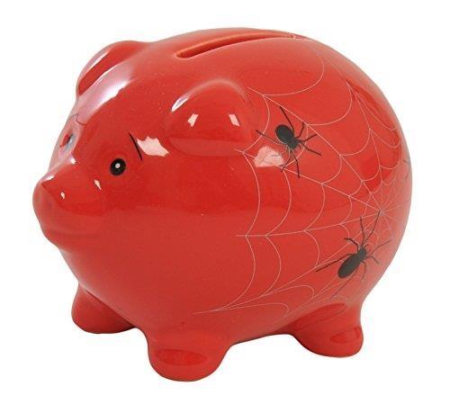 Porcelanowa skarbonka dla dzieci - czerwona świnka w pająki.