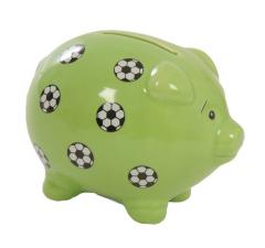Porcelanowa skarbonka dla dzieci - zielona świnka w piłki.