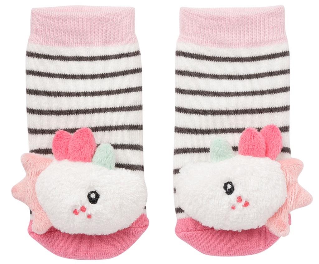 Skarpetki z grzechotką, Jednorożec Aiko, z kolekcji: Aiko i Yuki. Skarpetki z grzechotką w kształcie główki Jednorożca o imieniu Aiko, pochodzącego z Japonii. Wyjątkowo miękki i delikatny materiał przylega doskonale do stópek dziecka i zapewnia przyjemne ciepło przez cały dzień. Śliczne, solidnie uszyte, wyglądają bardzo zabawnie, wydają dźwięk przy każdym ruchu, co powoduje wielkie zainteresowanie malucha. Zmysły dziecka pobudzane są dźwiękiem grzechotki i wywołują u niego chęć kopania oraz przyciągania stóp blisko twarzy. Skarpetki wykonane zostały z materiałów najwyższej jakości, odpowiednie dla dzieci w wieku od 0 do 6 miesięcy. Idealne na prezent. Wykonane z materiałów najwyższej jakości. Stymulują zdolności motoryczne. Można prać. Od 0 do 6 miesięcy. Wszystkie zabawki niemieckiej marki FEHN są bezpieczne dla dzieci od 0 lat. Wykonane są z najlepszej jakości materiałów. Spełniają normy EN71, CE, badane w instytutach ""Stiftung Warentest"" lub ""kotest.