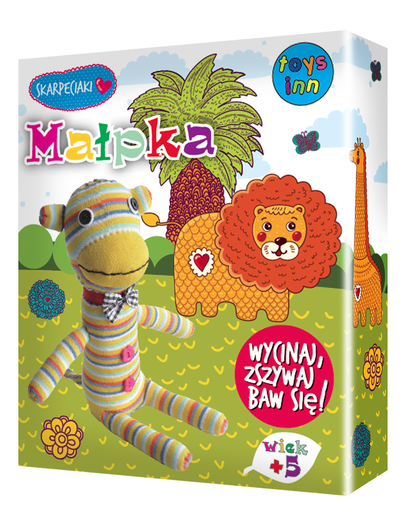 Aby wykonać zwierzątko, wytnij ze skarpetek poszczególne części i zszyj je ze sobą. Szczegóły w instrukcji wewnątrz opakowania.
