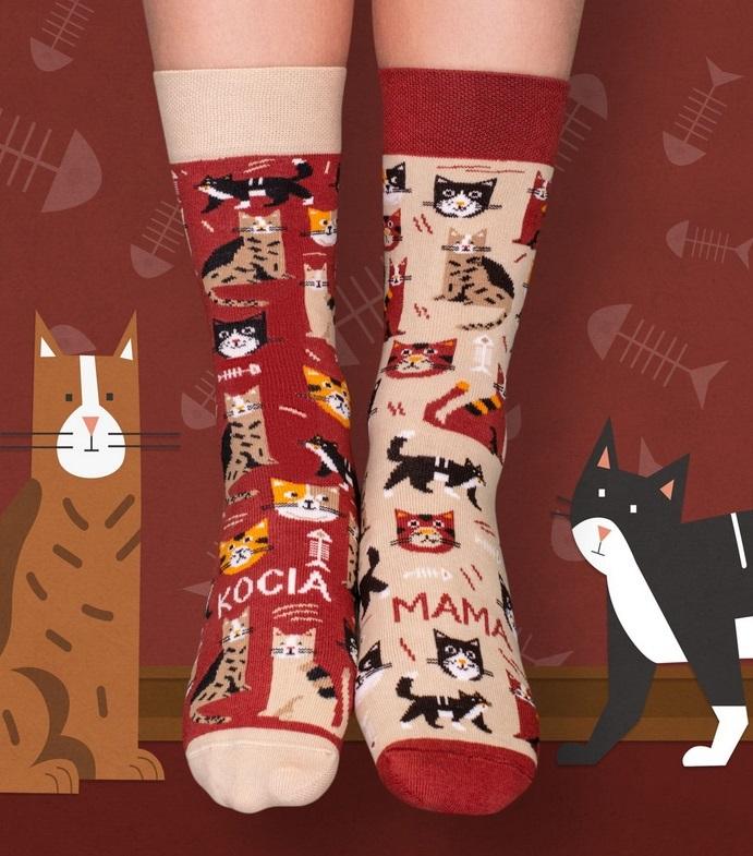 Skarpety KOCIA MAMA, jak sama nazwa wskazuje, polecają się na prezent dla każdej kociej mamy. Uwaga – nie opędzisz się od kotów!