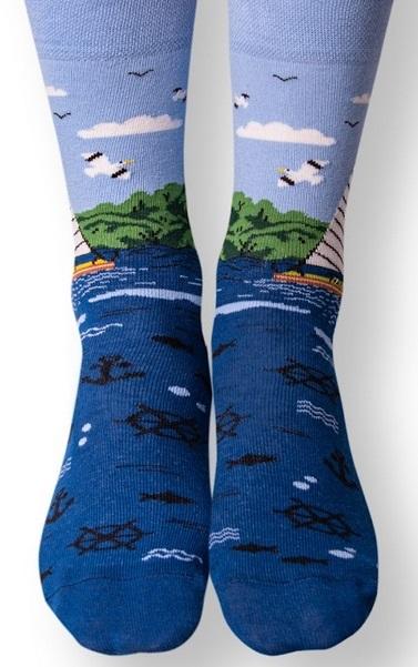 Opis produktuZasady bezpieczeństwaHej, żegluj, żeglarzu! Czy kiedykolwiek marzyłeś o tym, by wypłynąć na szerokie wody, poczuć wiatr we włosach i zapach soli morskiej? Teraz możesz to zrobić... przynajmniej w wyobraźni! Skarpety ŻAGLE przeniosą Cię prosto na pokład łodzi. Dla tych, którzy kochają jeziora, morza i życie na łajbie, te skarpetki są idealnym dodatkiem do garderoby. Uroku dodaje im wyjątkowy wzór z fragmentem szanty. Sprawi, że poczujesz się jak prawdziwy kapitan gotowy na żeglarskie wyzwania. ""Gdzie ta keja, a przy niej ten jacht... Gdzie ta koja wymarzona w snach?"" Już wiesz - na Twoich stopach! To idealny prezent dla żeglarza, marynarza, a nawet wędkarza. Załóż skarpety ŻAGLE i ruszaj w morską podróż pełną przygód! Dla miłośnika żeglugi Skład: 80% najwyższej jakości bawełna czesana, 17% poliamid (dodaje wytrzymałości), 3% elastan (skarpetka lepiej dopasowuje się do stopy) Nieuciskający ściągacz i komfortowy płaski szew na palcach Idealny prezent dla kolegi i koleżanki Wyprodukowano w Polsce Prać zawsze na lewej stronie w temperaturze maks. 40C, nie prasować. x