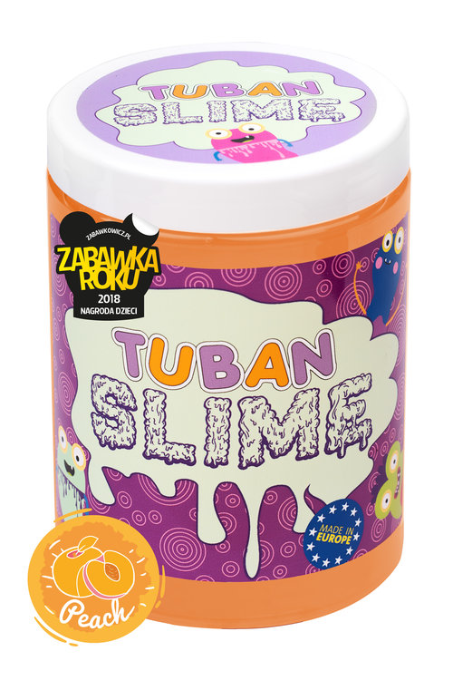 TUBAN Slime o zapachu brzoskwini. Fantastycznie się ciągnie i ugniata. Można z jego pomocą robić slimowe bańki.