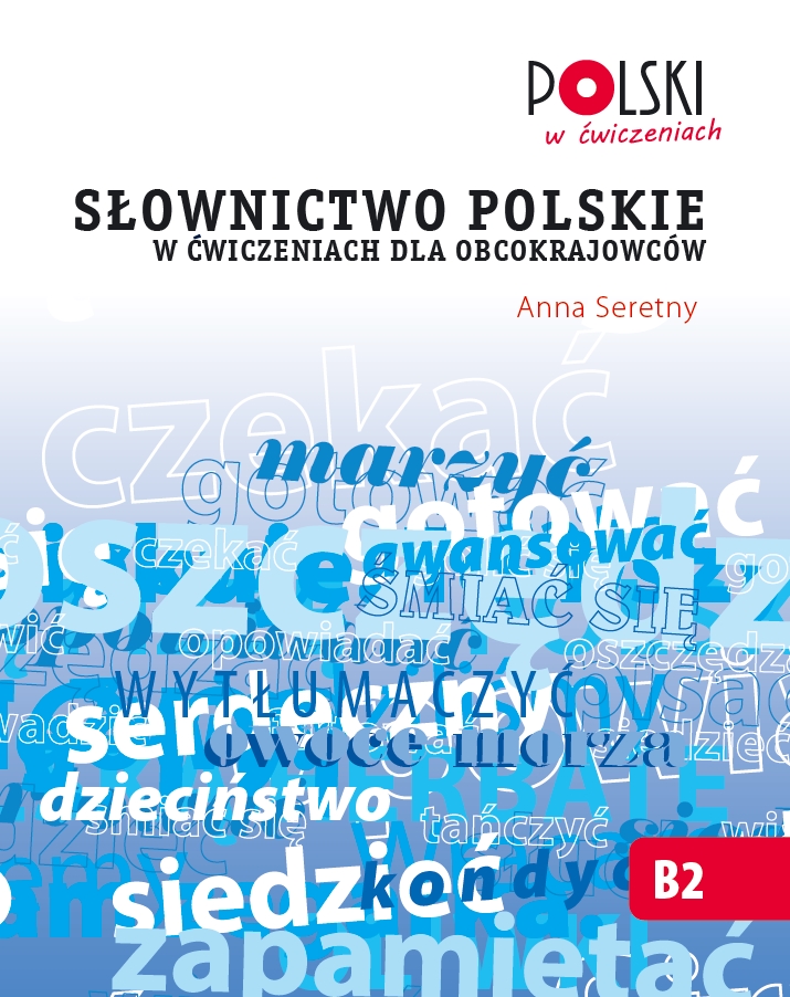 Słownictwo polskie w ćwiczeniach dla obcokrajowców to zbiór ćwiczeń w układzie tematycznym, przygotowany z myślą o cudzoziemcach uczących się polszczyzny na poziomie B2.