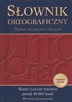 Przedstawiany Słownik Ortograficzny zawiera ponad 40 000 kłopotliwych, ale często używanych wyrazów. Są wśród nich zapożyczenia, które już na stałe weszły do języka polskiego, jak: faks, sparing, konsulting. Znajdziemy tu także nazwiska ważnych postaci żyjących współcześnie, których pisownia może sprawić trudności, postacie i miejsca biblijne, postacie literackie, nazwy geograficzne, powszechnie używane skróty, itp.Obok trudnych wyrazów znajdziesz także reguły polskiej ortografii z uwzględnieniem zmian, jakie zostały wprowadzone w ostatnim czasie przez Komisję Kultury Języka Komitetu Językoznawstwa PAN. Zostały one podane w sposób zwięzły, skrótowy, wypunktowano tylko najważniejsze, podstawowe. W razie wątpliwości zachęcamy do sprawdzenia pisowni wyrazu w części słownikowej. Ze szczególną uwagą potraktowano pisownię imiesłowów przymiotnikowych czynnych i biernych z przeczeniem ,,nie"".Czytelny układ haseł gwarantuje możliwość błyskawicznego odnalezienia potrzebnego słowa. Zostały one ułożone alfabetycznie. Każde hasło jest wzbogacone o zakończenia trudniejszych form fleksyjnych:balneoterapia -pii, pię.Jeśli dopuszcza się różne zakończenia, w nawiasach podano rzadziej używane, np.:banan -na (a. -nu), -nie; -nów.W przypadku wyrazów o takim samym brzmieniu, ale innym zapisie ortograficznym podano w nawiasach ich znaczenie, np.:chart (pies)hart (siła)