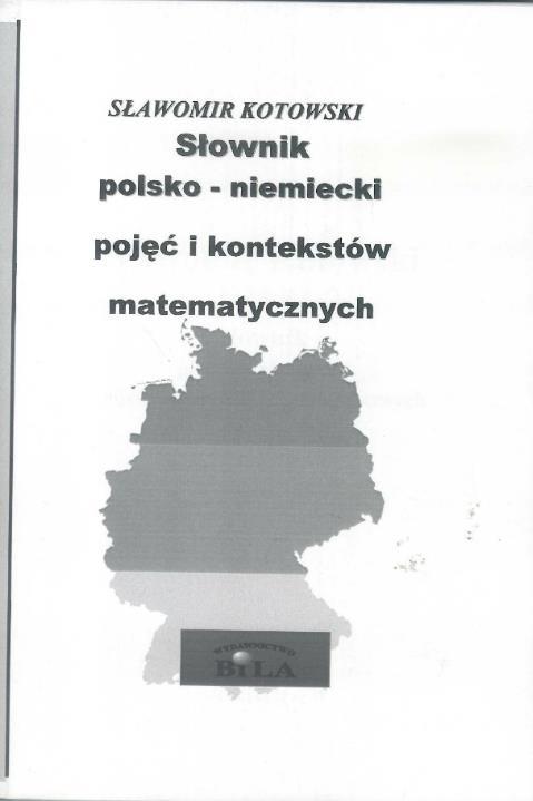 Słownik polsko- niemiecki pojęć i kontekstów matematycznych - Zeszyt 31 Biblioteczki Opracowań Matematycznych - zawiera ponad 5500 haseł matematycznych na poziomie średnim i wyższym. Powinien być przydatny studentom, uczniom, pracownikom naukowym oraz wszystkim, którzy tłumaczą matematyczne teksty z języka polskiego na język niemiecki.