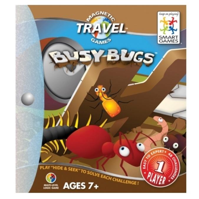 ""Robaczki"" to magnetyczna gra logiczna, oparta na znanej i lubianej serii ""Zabawa w Chowanego"". Posługując się wskazówkami, wspólnie rozwiążecie 48całkiem nowych zagadek. Pomóżcie nieśmiałym owadom skryć się pod kamieniami, i pozostawcie tylko te, które są wymienione w zagadce. To takie proste! Podobnie jak w poprzednich odsłonach, tak i tym razem atrakcyjne wykonanie sprawi, że dziecko będzie naturalnie zachęcane do zabawy. Dzięki magnetycznym elementom, w grę można zagrać w dowolnym miejscu, a nawet w czasie podróży! Nauka przez zabawę, to wspólna cecha wszystkich Smartów! Poznaj je już dziś! Za co Twoje dziecko pokocha tę grę? o Znana i lubiana gra w nowej odsłonie! o Doskonała do podróży o Trening spostrzegawczości i koncentracji Spis komponentów: o magnetyczna plansza z 48 zadaniami i rozwiązaniami o 4 magnetyczne elementy układanki Opakowanie w wersji angielskiej,produkt zawiera instrukcję z zasadami gry w języku polskim. x