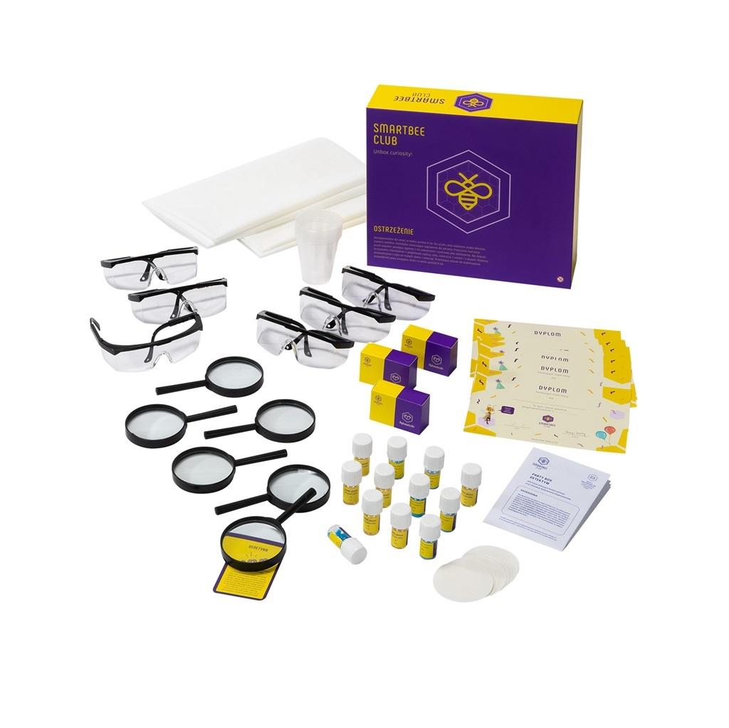 Opis produktuZasady bezpieczeństwaParty Boxy to seria zestawów ekspertmntów SBC, które zapewnią świetną zabawę w naukowym stylu oraz niezapomniane wrażenia podczas każdej dziecięcej imprezki. Party Boxy SmartBee Club zawierają pełne wyposażenie do przeprowadzenia doświadczenia dla 6 uczestników. Party Box Detektyw zawiera wszystkie potrzebne akcesoria, komponenty oraz odczynniki do wykonania w domu eksperymentu: Badanie odcisków palców. Podczas zabawy dzieci zamienią się w techników detektywistycznych, będą pobierać odciski palców dzięki własnoręcznie stworzonej substancji, a następnie będą analizować je pod lupą, oraz stworzą kartotekę. Dodatkowo poznają nowe odczynniki chemiczne oraz dowiedzą się ciekawostek detektywistycznych. Doświadczenie wzbogacone jest przez technologię rozszerzonej rzeczywistości, co wprawi Młodych Detektywów w pozytywne zaskoczenie. Dzięki karcie AR, dzieci obejrzą model DNA w technologii rozszerzanej rzeczywistości (AR). Wszyscy goście wrócą do domów z naukowymi pamiątkami, pełni wrażeń i dobrej energii. Zestaw przewidziany jest tak, aby uczestnicy spotkania mogli zabrać do domu kartę AR, swoją kartotekę oraz lupę. Na koniec wspólnej zabawy, na pamiątkę wesołego eksperymentowania, każdy z uczestników otrzyma od gospodarza Dyplom Naukowych Supermocy.