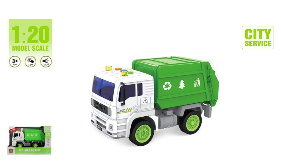 - Duża śmieciarka z otwieranym koszem. - Świetny pojazd budowlany z serii samochodów miejskich. - Ruchoma elementy. - Pojazd ma napęd typu frykcja i wykonany jest z dobrej jakości plastiku. - Zasilana bateriami, wydaje dźwięki i świeci. - Skala odwzorowania 1:20. - Wymiary zabawki: 18 x 9 x 11 cm. - Wymiary opakowania: 2412 15,5 cm. Zabawka posiada certyfikat CE. Zabawka przeznaczona dla dzieci powyżej 3go roku życia. x