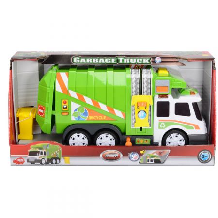 Śmieciarka 33 cm emituje światło, wydaje dźwięki. Wyposażona jest w pojemnik na odpady, który porusza się w górę i w dół. Pojazd posiada funkcję Try me i mierzy 39 cm. Produkt przeznaczony: dla dzieci powyżej 3 lat