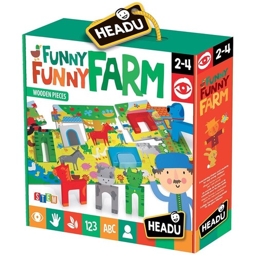 Zabawna, zabawna farma to zestaw samokorygujących puzzli przedstawiających kolorową farmę. W komplecie są także figurki zwierząt, które można dopasować do układanki. Każde zwierzę można układać niemal dowolnie - co szalenie pobudza wyobraźnię najmłodszych!