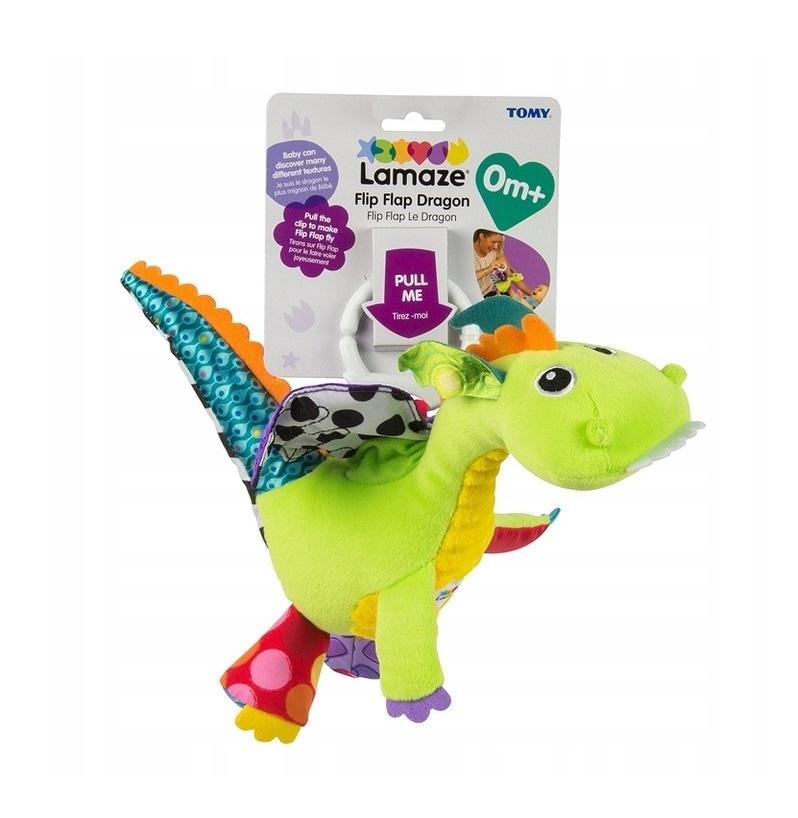 Zawieszka w kształcie smoka przyciągnie uwagę dziecka wesołymi, intensywnymi kolorami. Różne faktury tkanin i szeleszczące elementy stymulują dotyk i słuch. Po pociągnięciu za sznurek smok macha skrzydełkami.