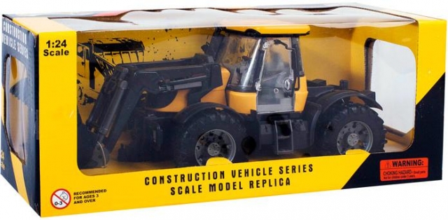 Auto budowlane spychacz w kolorze żółto czarnym.