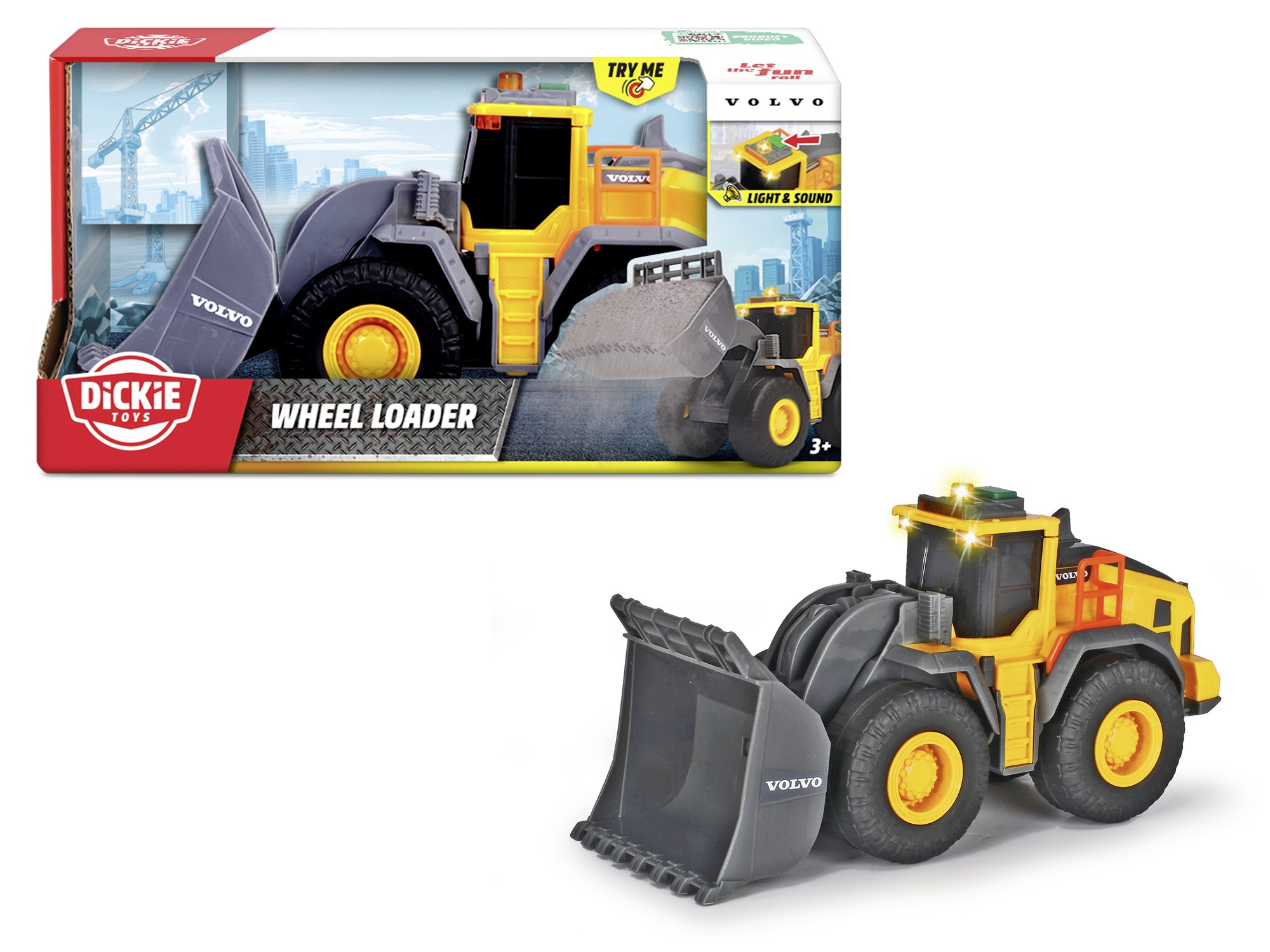 Opis produktuZasady bezpieczeństwaDickie Toys Volvo spychacz ze światłem i dźwiękiem, 23 cm Spychacz z dużą łopatą to idealna zabawka dla początkujących budowniczych. Łopatę można podnieść oraz opuścić. Pojazd ma również efekty świetlne i dźwiękowe, które pobudzają zmysły i wyobraźnię malucha. Długość: 23 cm, 3l+