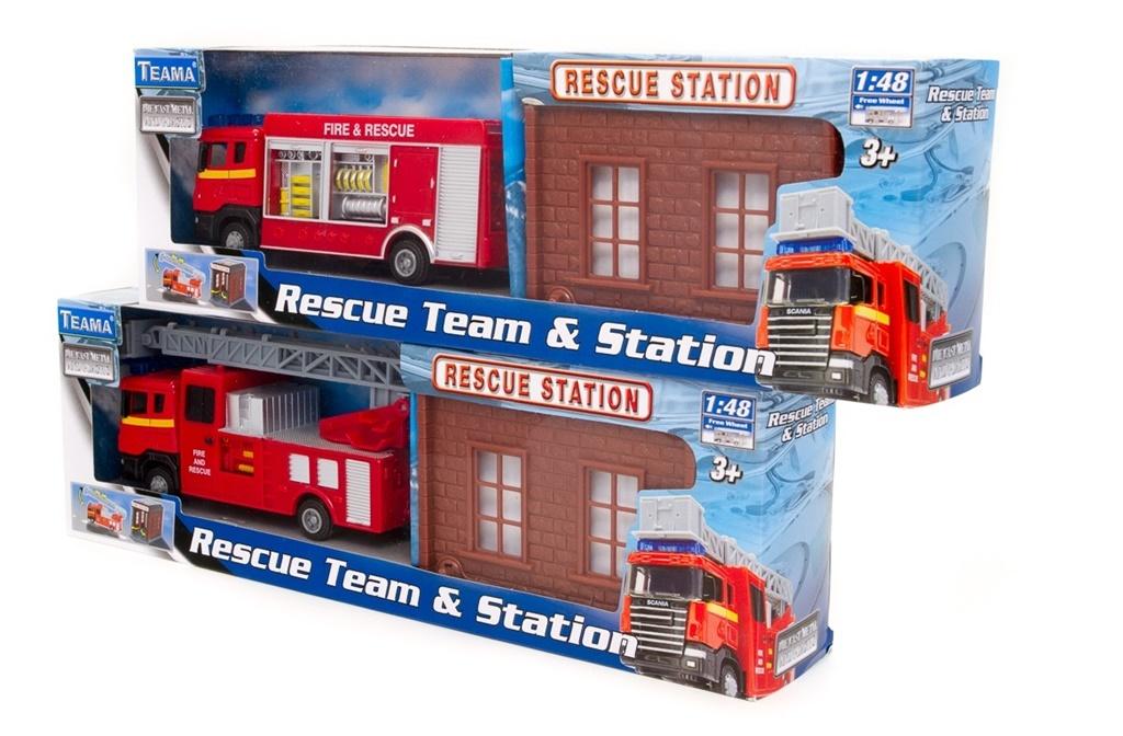 Plastikowy model stacji służb ratowniczych wraz z samochodem w skali 1:48