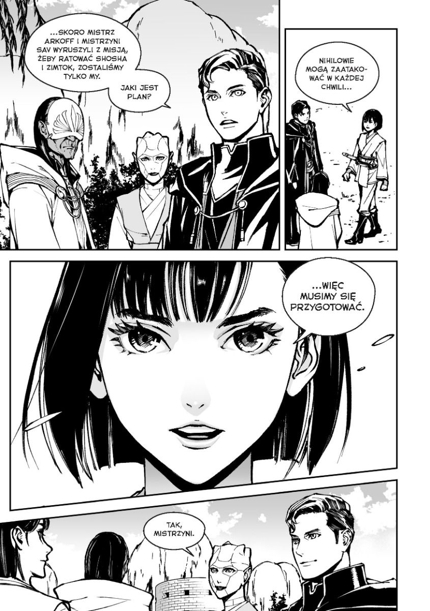 Ostatni tom serii. Rycerka Jedi Tora-Asi, mimo że ledwie przeżyła zażartą bitwę przeciwko Nihilom i Bezimiennym, wie, że walka o ochronę świątyni Jedi na Banchii i mieszkańców tej planety na pograniczu szybko się nie skończy. Gdy w ich stronę zmierza budząca grozę armia pod dowództwem nihilskiego naukowca Barona Boolana, Lily musi zaufać swoim sojusznikom i sięgnąć w głąb siebie, żeby zmierzyć się z największym jak dotąd wyzwaniem! Lily i jej przyjaciele próbują jak najszybciej odbudować umocnienia i systemy obrony. Tymczasem mistrzyni Sav Malagán i mistrz Arkoff przysięgają uratować swoich towarzyszy uwięzionych przez Nihilów. Sav będzie musiała wejrzeć w przeszłość, aby znaleźć jedyną osobę, która może pomóc.... x